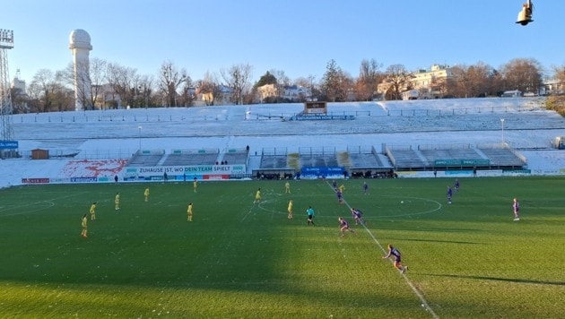 Bereits am Sonntag Vormittag rückten freiwillige Helfer um Teammanager, Torfrautrainer oder Greenkeeper und Räumfahrzeuge an, um das Spielfeld auf der Hohen Warte für das Derby vom Schnee freizubekommen. Gelang eindrucksvoll – so sollte auch die Austria später die Bedingungen loben. Nach der Platzbesichtigung, als einige Mädels gut gelaunt Schneebälle geworfen hatten, und dem Aufwärmen war es um 15 Uhr so weit, konnte das Derby auf der kultigen Spielstätte in Döbling beginnen.